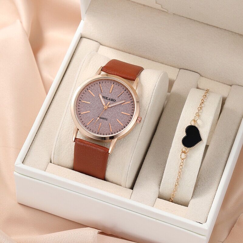 【Watch+Bracelet】Watch Bracelet Set Fashion Starry Sky Leather Strap Women Watches