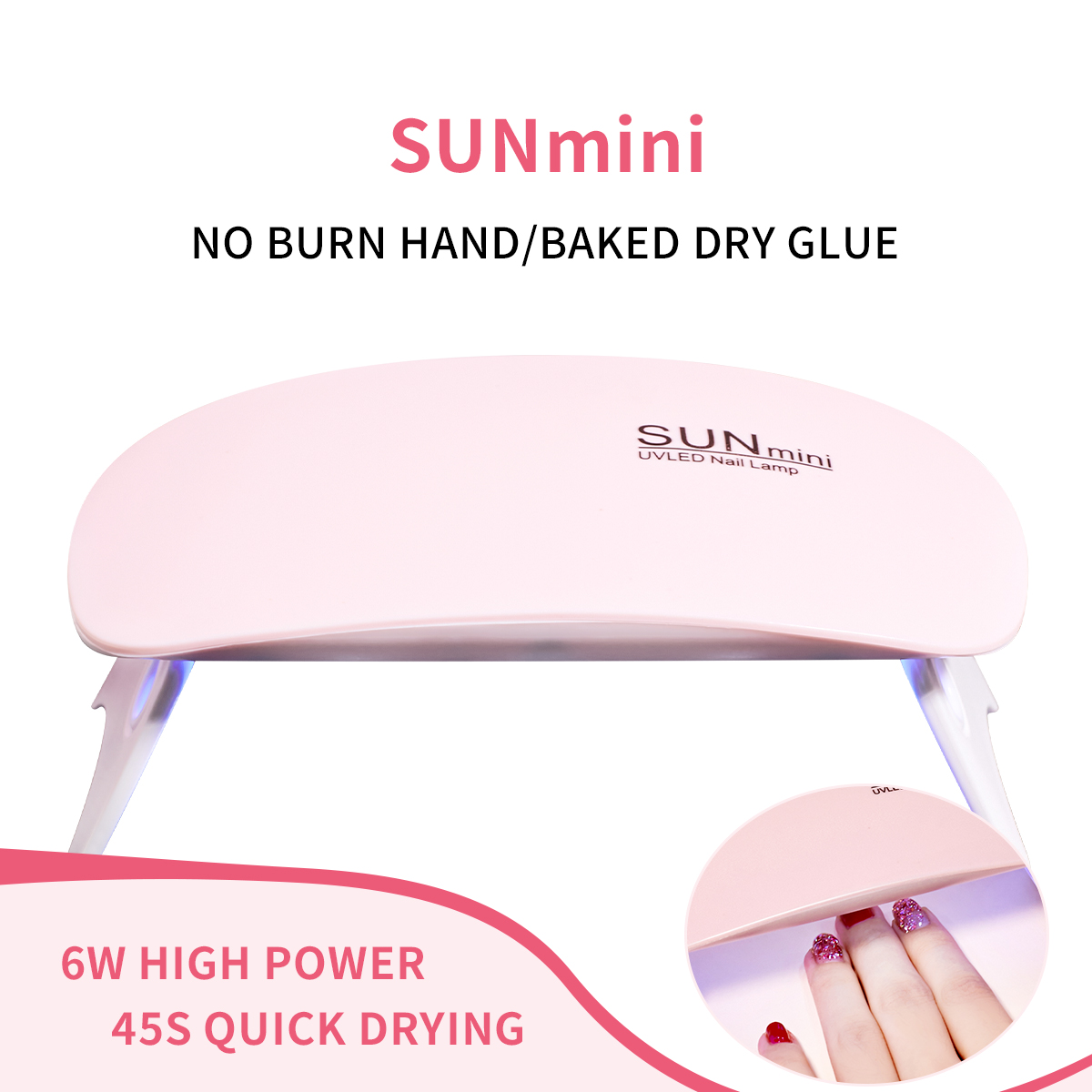 1pc 6W Pink Mini Mouse Nail Lamp Nail Dryer Machine UV/LED Lamp Portable Micro USB Charging Cable Home Use Drying Lamp For Gel
