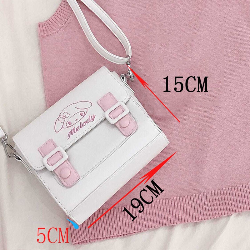New Cute Sanrio Cinnamoroll Kuromi Melody Shoulder Bag Satchel Lolita Tote Sling Bag PU Square Bag