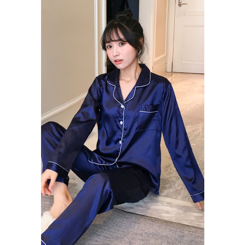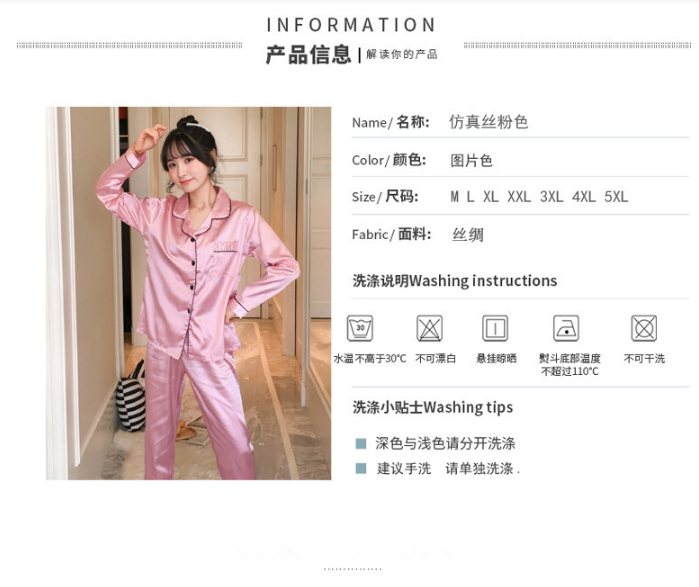 Ready Stock Plus Size M-5XL pajamas Suit Satin Long Sleeve pyjamas Baju Tidur Silk Sleepwear 2-piece set