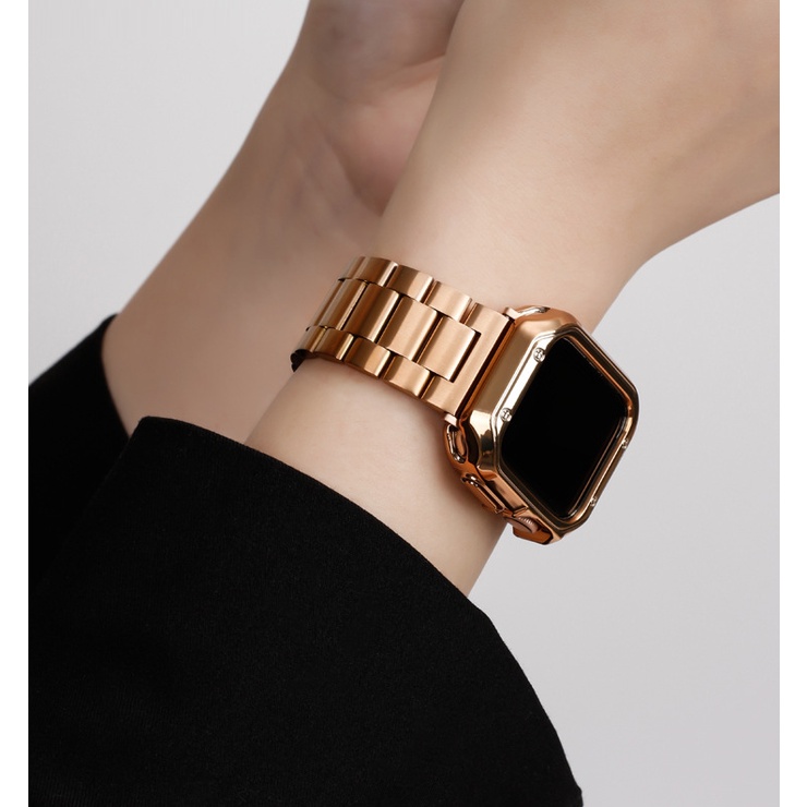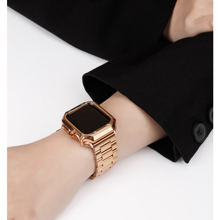 Luxury Strap + Case Compatible For Watch Strap Series 9 8 7 6 5 4 3 2 1,Watch SE,SE2, Ultra 2, Ultra Strap Stainless Steel Watch Strap Size 41mm 45mm 49mm 40mm 44mm Watch Case